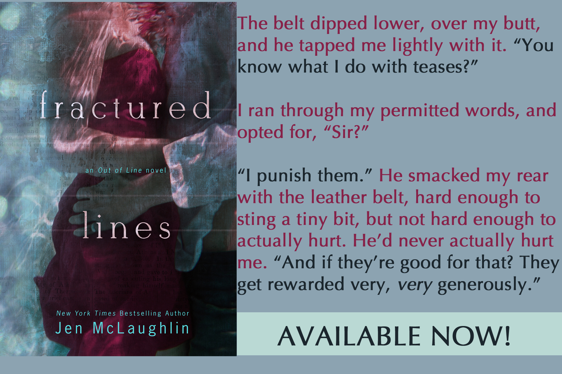 When I thought we were done forever, I was sad, but okay with it. After the readers had finished, I got countless emails begging me to continue the story. I didn’t think it was possible, but then…it hit me. I could write Finn as an adult! And so FRACTURED LINES came into existence.