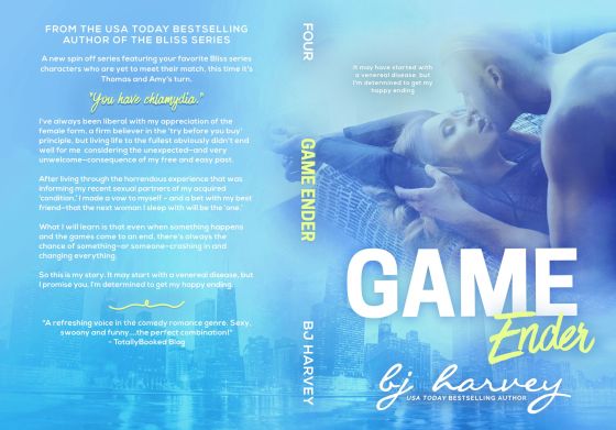 GAME ENDER by B.J. Harvey is the fourth book in her Game series and features Cade’s roommate, Thomas Calhoun totally falling head over heels for Amy, a bartender in Sean’s club, Throb and good friends with Mia and Abi. Yes, everyone in this series is deeply connected.