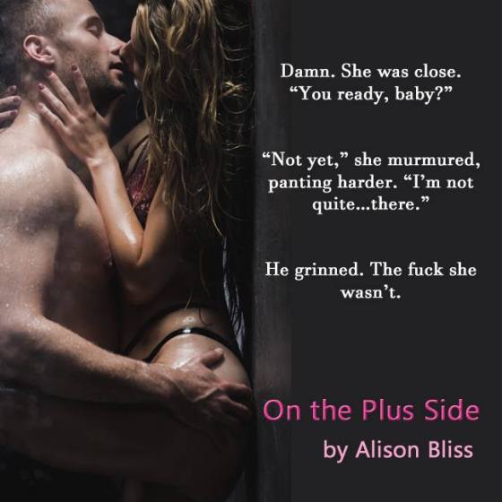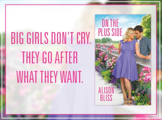 Are you ready to laugh out loud? ON THE PLUS SIDE is a sexy sweet love story with a heroine I absolutely adored! Alison Bliss writes sassy quips and witty banter with the best of them and never fails to make me actually laugh! Her characters are easy to root for, easy to love and it’s so easy to get lost in their story.