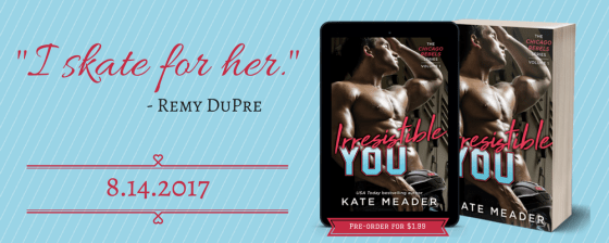 After reading In Skates Trouble, the Chicago Rebels teaser novella (loved it!), I couldn’t wait for more of Kate Meader’s hot, sexy, hockey players and was so happy to have the opportunity to download an early copy from NetGalley. IRRESISTIBLE YOU more than fulfilled my hopes for another great story in her new series.